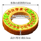 鶏卵、小麦粉、砂糖、マーガリン、ショートニング、麦芽糖、洋酒、液糖、脱脂粉乳、乳化剤、膨張剤、香料、着色料(カロチン青1、黄4、赤102、赤106)、(原材料の一部に大豆を含む)※着色料は、バウムクーヘンの文字等の印刷に使う食用インクです。 |