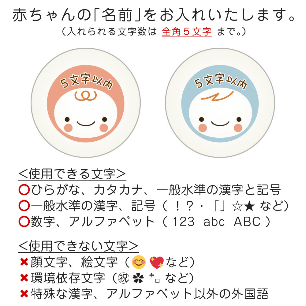 赤ちゃんのイラストは、「ピンク」または「ブルー」の2色からお好きな色をお選びいただけます。
