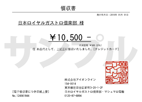別途、弊社が発行する領収書が必要な場合はメールにてご相談くださいませ。